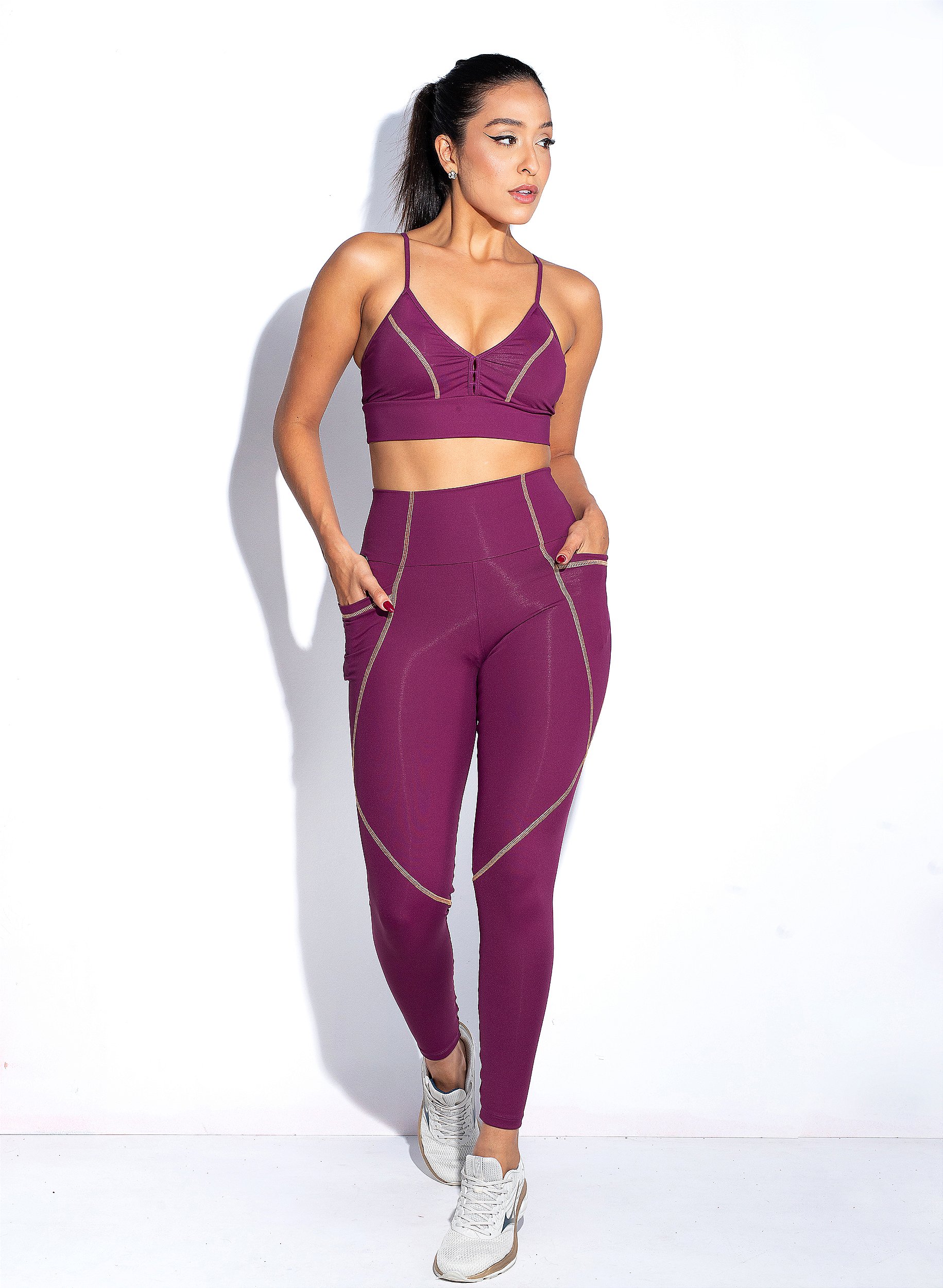 O Conjunto Fitness Fantasia é para quem gosta de peças básicas e coringas em qualquer guarda roupas. Foi produzido com tecido em poliamida e elastano que tem um toque muito macio, e excelente compressão. Possui tecnologia AIR que tem ótima respirabilidade e deixa a peça com muito conforto térmico. A Legging possui bolso lateral, recortes com acabamento em ponto fantasia, cós alto anatômico. O Top possui cós alto, bojo removível, e acabamento em ponto fantasia.